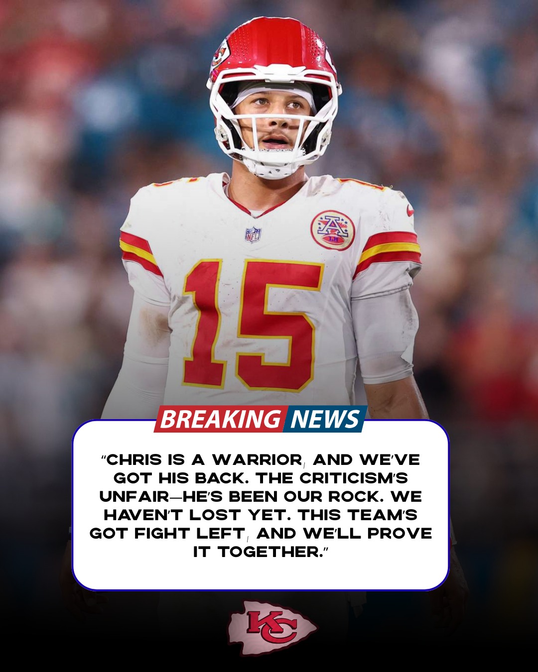 In a press conference, Mahomes rallied behind Jones, dismissing the negativity. “Chris is a warrior, and we’ve got his back,” Mahomes said. “The criticism’s unfair—he’s been our rock. We haven’t lost yet. This team’s got fight left, and we’ll prove it together.” His words aimed to unify the squad, emphasizing resilience amid a rocky start.