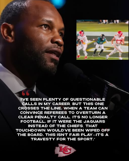It was supposed to be just another hard-fought Sunday matchup — Chiefs vs Jaguars, two powerhouse teams battling for pride and playoff momentum. But in the final minutes, everything changed. A single Offensive Pass Interference call set the internet ablaze, turned fans against officials, and drew a thunderous reaction from one of Jacksonville’s most beloved icons: Fred Taylor.