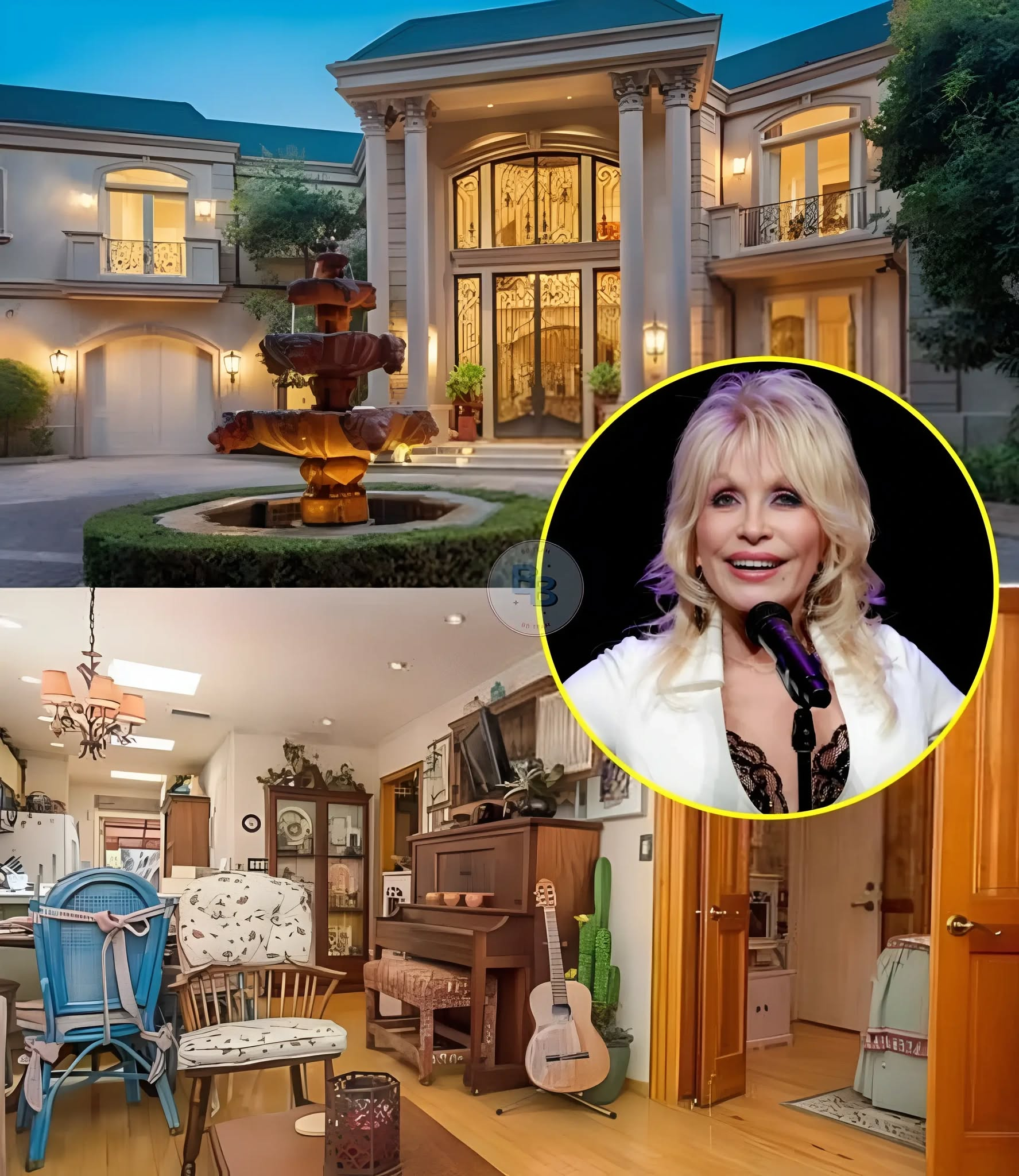 Inside her Brentwood home, the décor is said to be as warm and colorful as the woman herself — handmade quilts, framed family photos, and furniture that feels lived in rather than displayed. There’s a piano in the corner, a small reading nook, and a porch where Dolly often writes her songs.