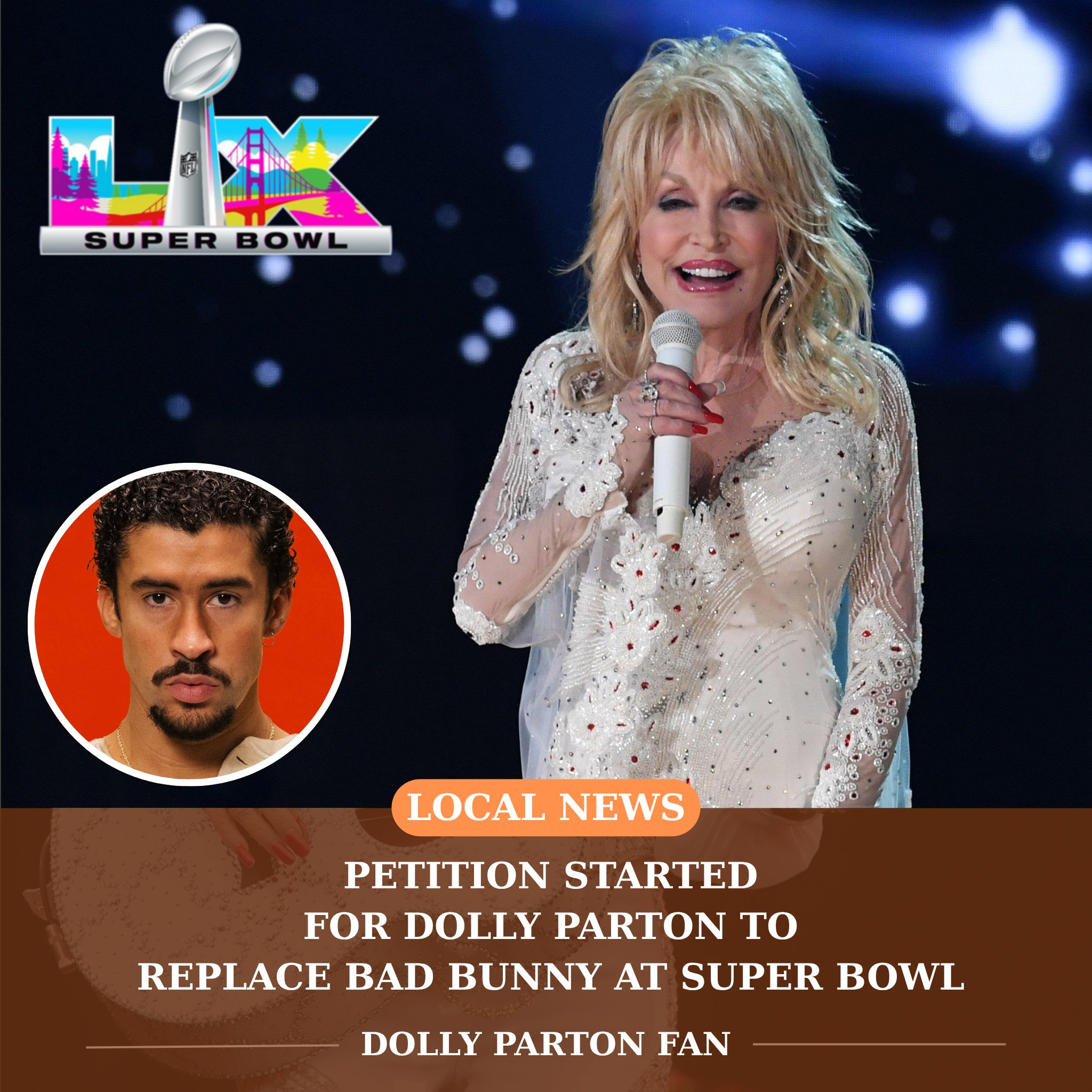 As excitement builds for the 2026 Super Bowl, a new fan movement has sparked online — and it’s making waves across the country music community. Thousands of fans are now petitioning for Dolly Parton, the beloved country legend and cultural icon, to replace Bad Bunny as the headliner for next year’s Super Bowl Halftime Show.