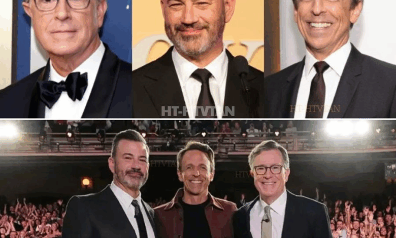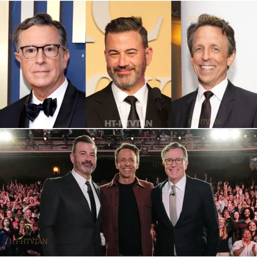 Late-night television is about to witness a spectacle unlike anything seen in years. In a surprise event that has electrified fans, three of America’s biggest late-night hosts—Jimmy Kimmel, Stephen Colbert, and Seth Meyers—are set to share the same stage in Brooklyn for an unprecedented crossover special. What began as a fun East Coast run of Jimmy Kimmel Live! quickly evolved into something far larger than expected. Originally planned as a friendly exchange between Kimmel and Colbert, the night has now expanded into a three-way reunion with the last-minute addition of Meyers, creating one of the most ambitious collaborations in late-night history.