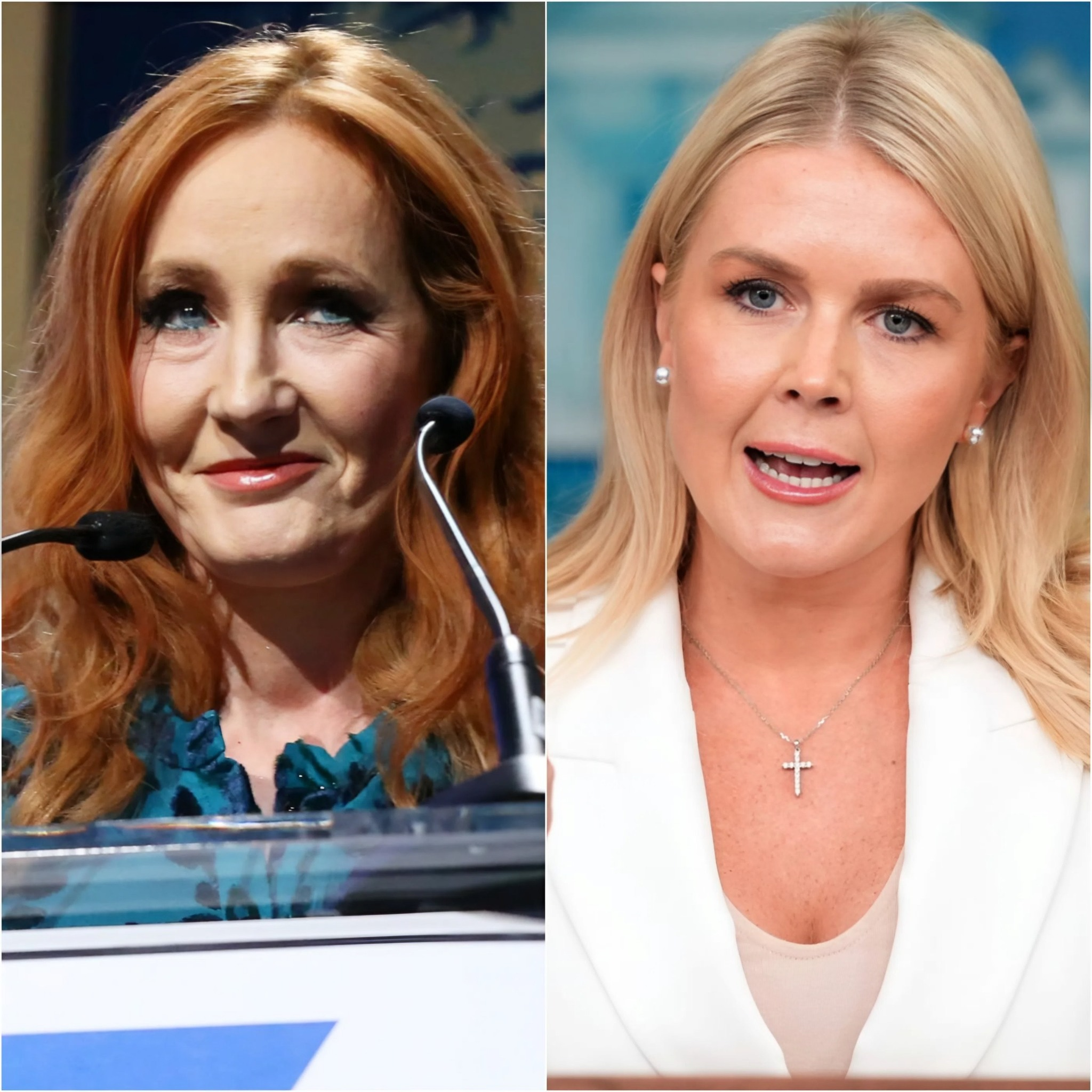 In the high-stakes arena of live television debates, where words can ignite wildfires of controversy, few moments capture the raw tension of politics and celebrity colliding quite like the exchange between J.K. Rowling and Karoline Leavitt. It was a scene straight out of a thriller novel—one that the Harry Potter author herself might have penned—with the studio lights glaring down on a confrontation that would leave audiences buzzing for days. As the cameras rolled on a primetime political showdown, Rowling, known for her unyielding defense of free speech and her sharp critiques of modern cultural battles, turned her gaze toward Leavitt, the rising star in Donald Trump’s inner circle. What followed was a verbal joust that not only dominated headlines but also sparked endless debates on social media, proving once again how a single, searing remark can redefine a public figure’s narrative.