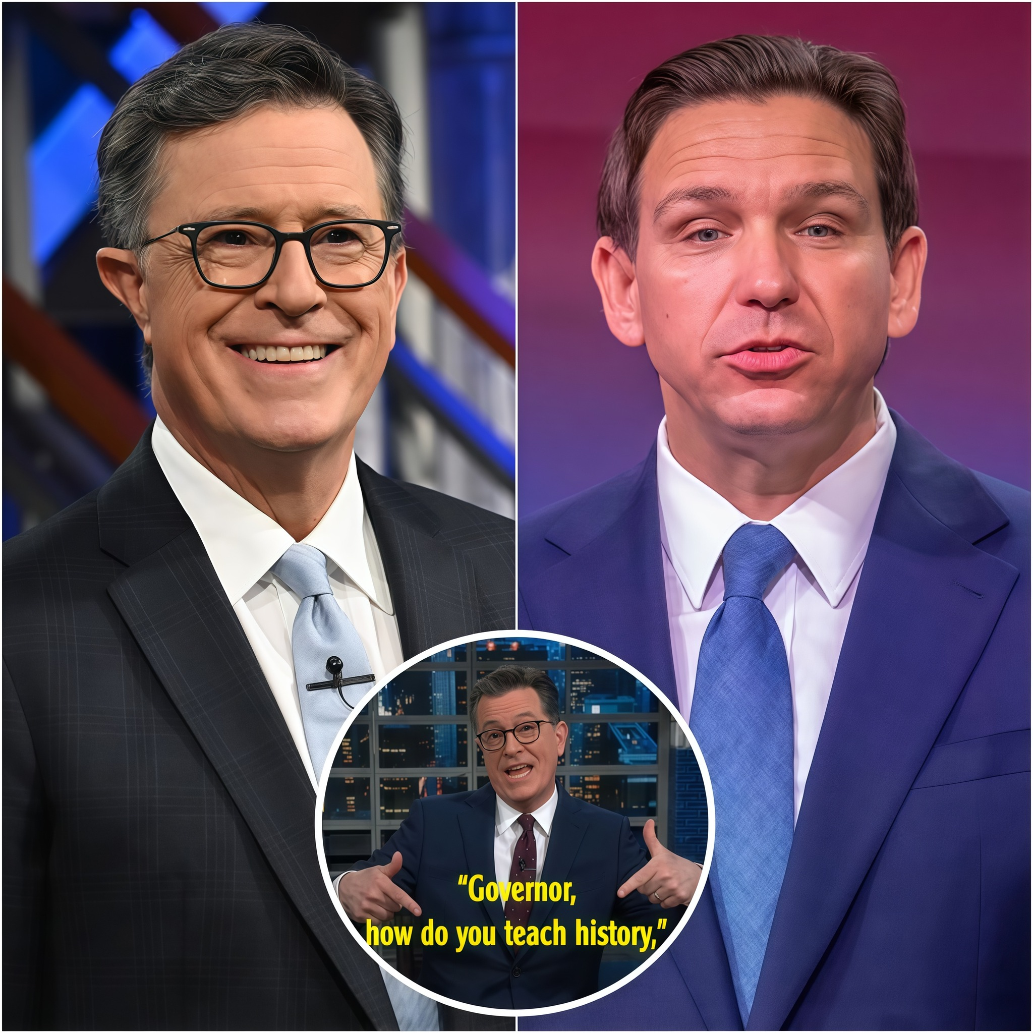 On a Tuesday evening in Manhattan, the Late Show audience roared as Governor Ron DeSantis strode onto the stage, crisp navy suit, trademark smirk, American-flag lapel gleaming beneath the lights. Stephen Colbert rose to greet him with that mix of Midwestern warmth and razor irony that’s made him a cultural compass for twenty years.