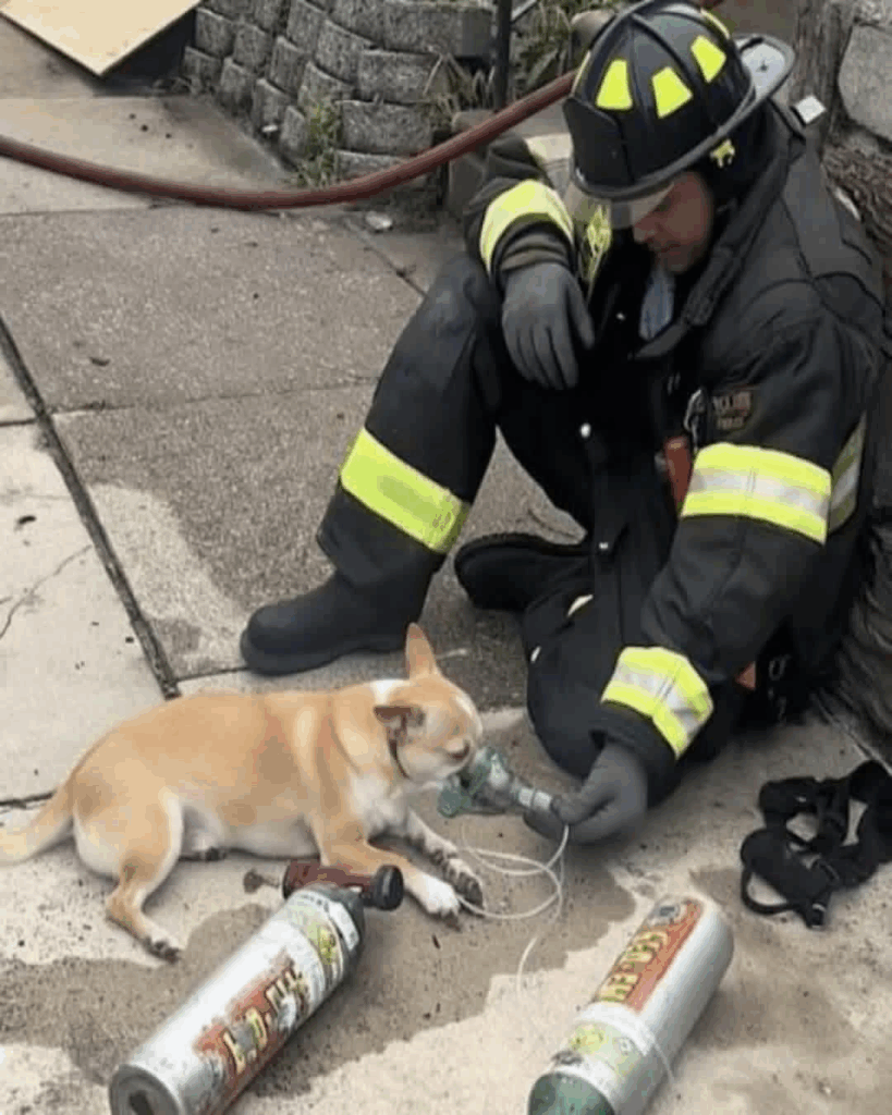 For a second, the crowd didn’t move. All they saw was a firefighter emerging from the flames, covered in soot, clutching something small against his gear. Then came the realization — the dog was alive.