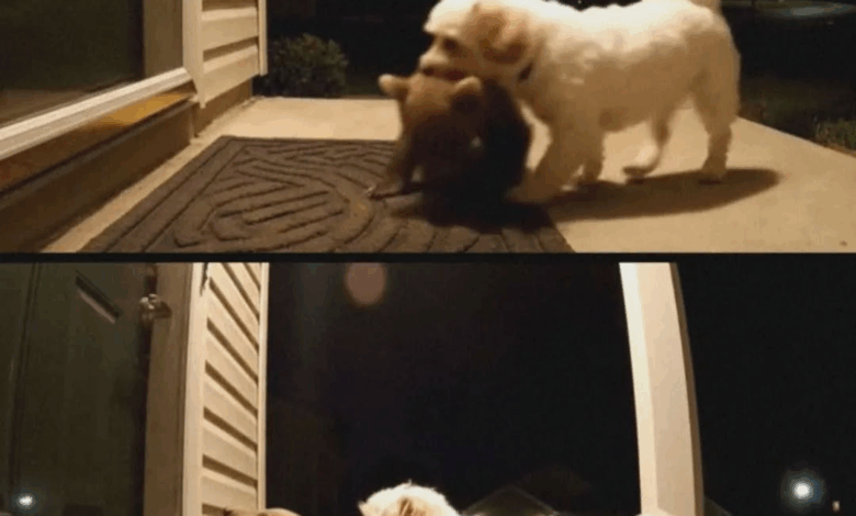 It was supposed to be an ordinary evening. A woman let her dog out into the yard before bed, the way she had done countless times before. The night was quiet, uneventful — until a few minutes later when she heard scratching at her front door.