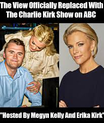 But what ABC revealed next left the media world stunned — and in some corners, outraged. The network confirmed that its replacement for The View would be The Charlie Kirk Show, featuring conservative commentator Charlie Kirk, his wife Erika Kirk, and journalist Megyn Kelly as the lead co-hosts. In one move, ABC wiped away nearly three decades of progressive chatter and replaced it with an unapologetically right-leaning powerhouse of voices.