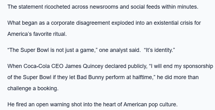 Home/Uncategorized/GS. “I WILL PULL MY SPONSORSHIP!” — Coca-Cola CEO Threatens NFL Over Bad Bunny Super Bowl Halftime Performance” – jiji Uncategorized GS. “I WILL PULL MY SPONSORSHIP!” — Coca-Cola CEO Threatens NFL Over Bad Bunny Super Bowl Halftime Performance” – jiji xiumhs12327 seconds ago0 1 Less than a minute xiumhs12327 seconds ago0 1 Less than a minute Facebook Twitter LinkedIn Tumblr Pinterest Reddit VKontakte Share via Email Print