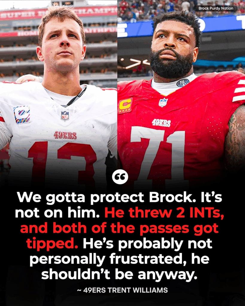 When a team as closely watched as the San Francisco 49ers stumbles, every mistake is magnified under the harsh glare of national attention. And in recent weeks, all eyes have been on quarterback Brock Purdy, whose turnovers drew heavy criticism from fans and analysts alike. But on Sunday, veteran left tackle Trent Williams stepped forward to set the record straight — and in doing so, completely reframed the conversation around Purdy’s performance.