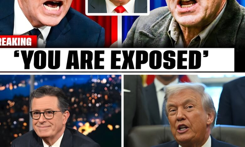 Enter Stephen Colbert and Robert De Niro—framed here as a two-man tag team that turned Trump’s image into a public demolition project. Colbert’s role is the precision instrument: calm voice, sharp timing, the kind of joke that doesn’t feel like exaggeration because it’s built on clips, quotes, and contradictions. De Niro is the blunt-force thunder—less interested in cleverness than moral condemnation, the kind that makes audiences stand up before the sentence is even finished.