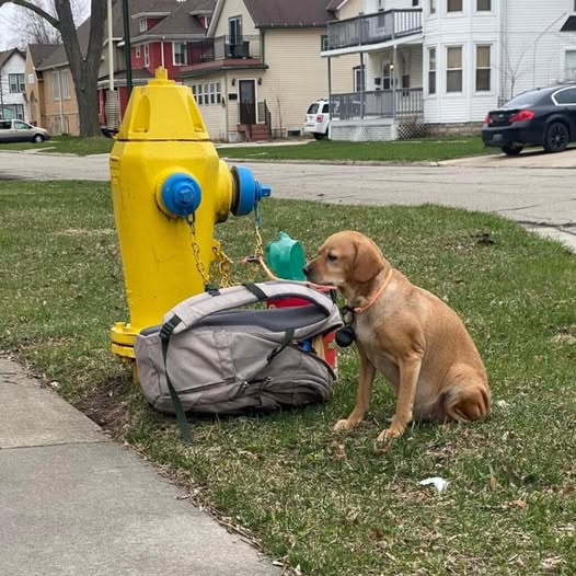 In a touching story from Green Bay, Wisconsin, a dog found tied to a fire hydrant has become the center of online chatter. A local woman encountered the dog, a mixed-breed female nearly six years old, sitting patiently next to a large backpack.
