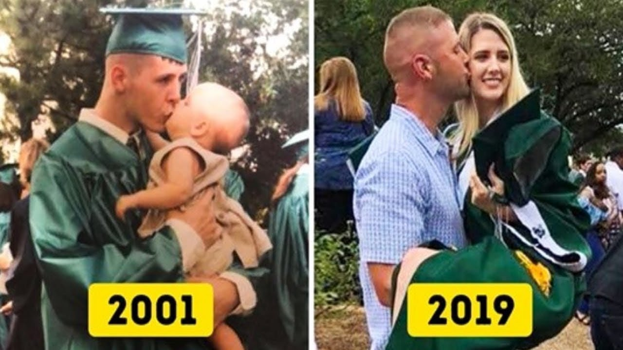 A Sweet Moment Recreated After 18 Years: Father and Daughter Reenact a Special Graduation Photo
