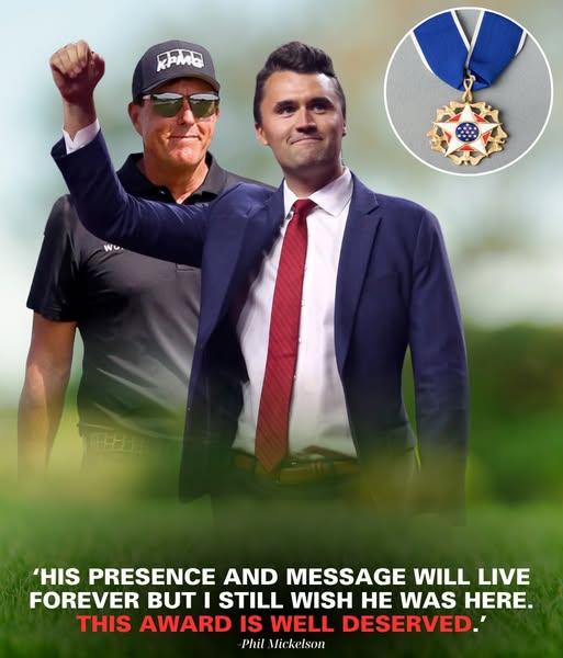 Among those in attendance was golf legend Phil Mickelson, who stepped forward after the ceremony to share a few heartfelt words that left the room in quiet reflection. “This is more than an award,” Mickelson began, his tone steady but heavy with emotion. “It’s a moment of truth and honor — a recognition that what Charlie stood for still matters, maybe now more than ever.”