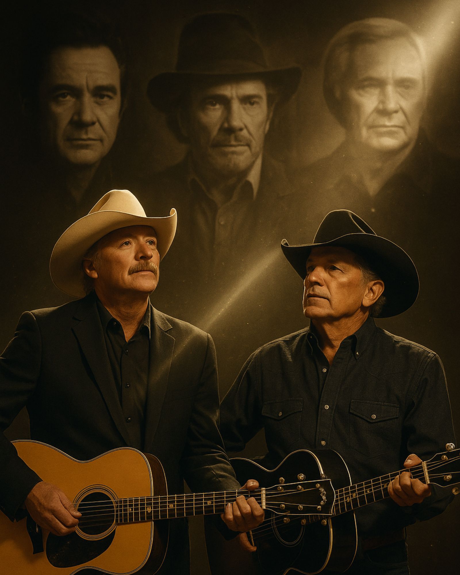 Alan and George weren’t just performing songs. They were handing us a legacy. A reminder that country music is more than melodies — it’s stories, carved in heartstrings, passed down like heirlooms. That night, the ghosts of country’s past stood shoulder to shoulder with its present. And for those few minutes, we didn’t just listen. We lived.