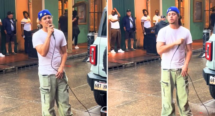 Country-rap star Jelly Roll, known for his raw emotion and brutal honesty, was driving through downtown when he stumbled upon a voice echoing through the streets — his own song, “Save Me.” But it wasn’t coming from a radio. It was coming from a young street performer named Jourdan Blue, whose passion and pain poured through every note.