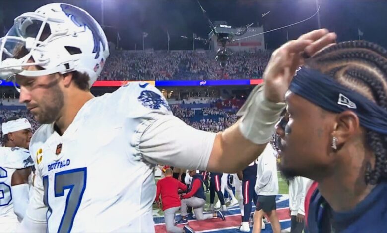 The post-game fireworks were just as captivating as the action on the field Sunday night in Buffalo, as the New England Patriots stunned the formerly undefeated Buffalo Bills with a thrilling 23-20 victory. However, the most talked-about moment came at midfield, where rival quarterback Josh Allen and Patriots star wide receiver Stefon Diggs shared an unexpectedly heartfelt, candid exchange captured by mic’d up cameras.