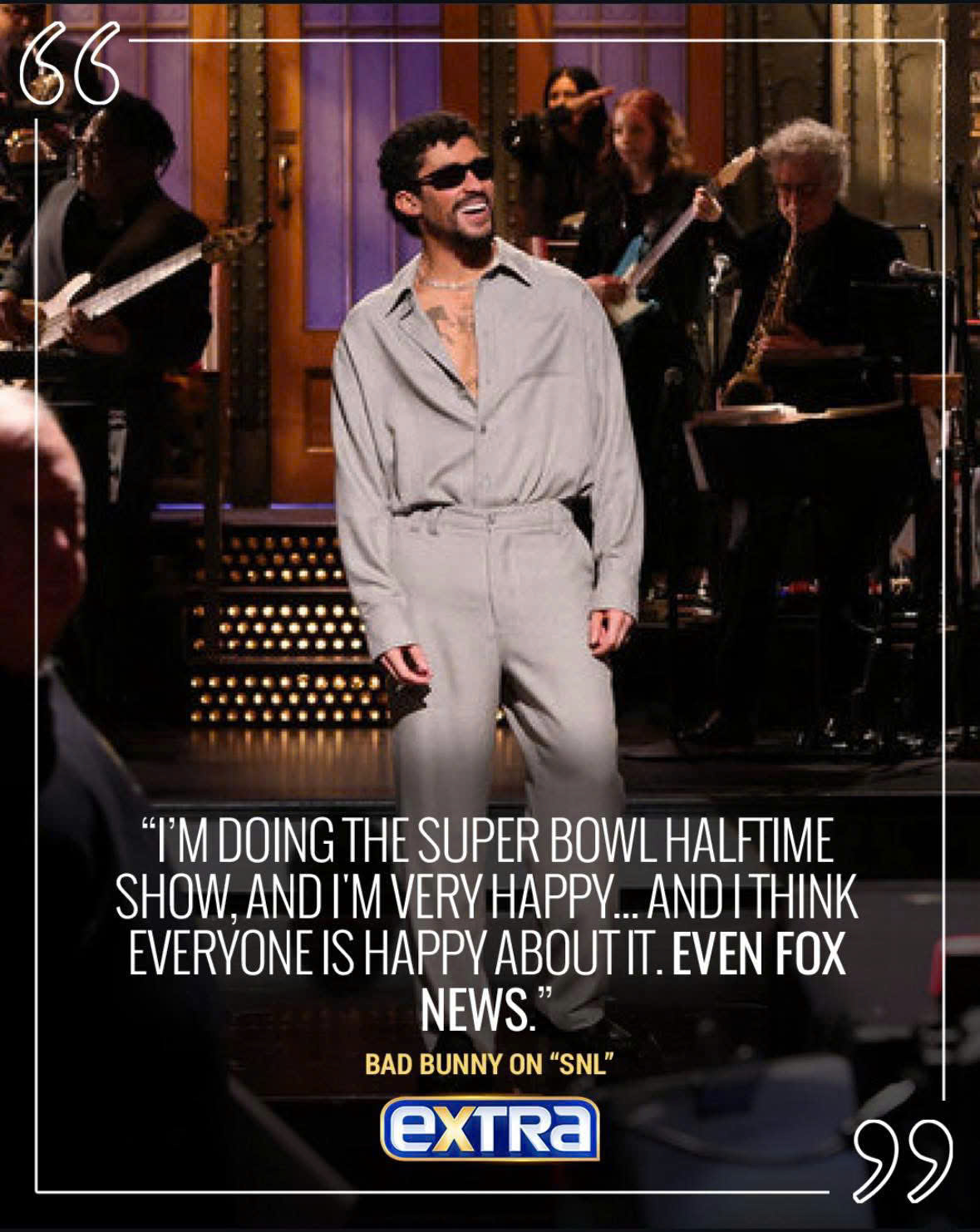 The show cut to a fast edit of out-of-context words by Fox News personalities seeming to say, “Bad Bunny is my favorite musician and he should be the next president.”