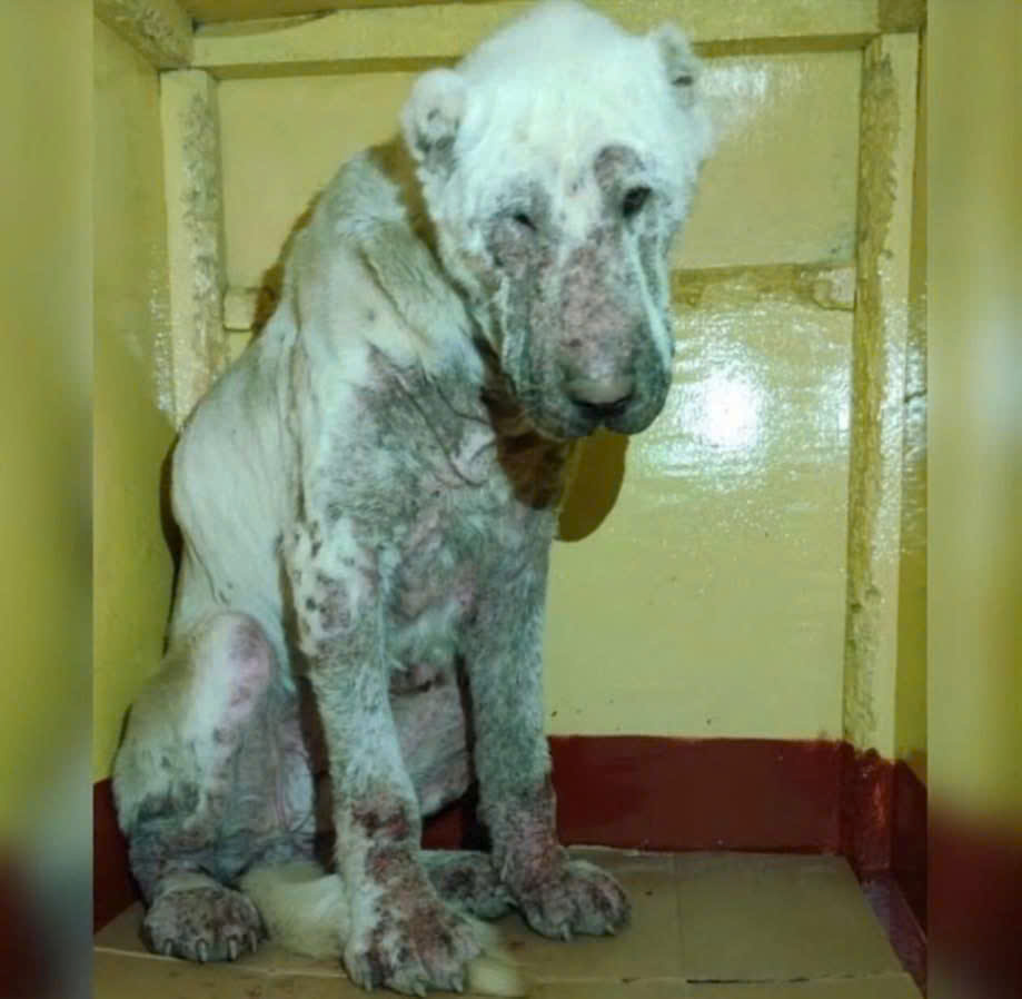 Her body, painfully thin, was covered in patches of mange and dirt. Her sunken eyes, devoid of hope, reflected years of suffering. Passersby turned away, unwilling to look at the heartbreaking reality in front of them.