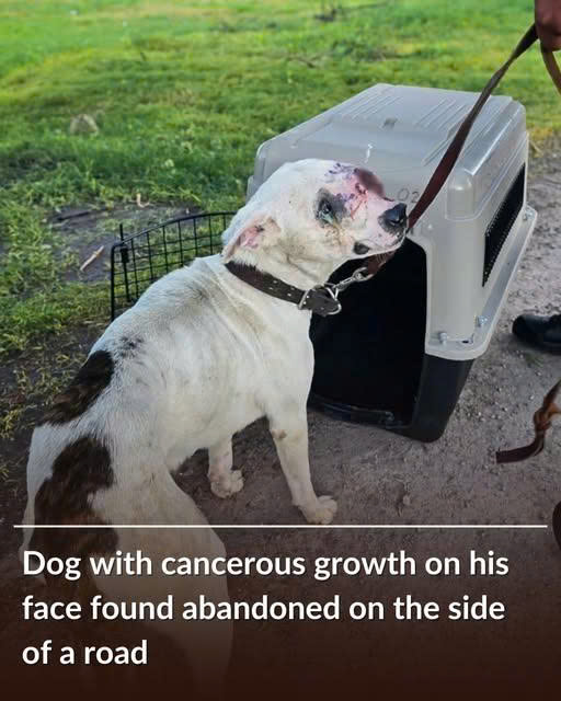 This poor dog was found with a broken chain around his neck on the side of the road with a bleeding mass on his face. Rescuers rushed him to a local veterinarian to be examined.