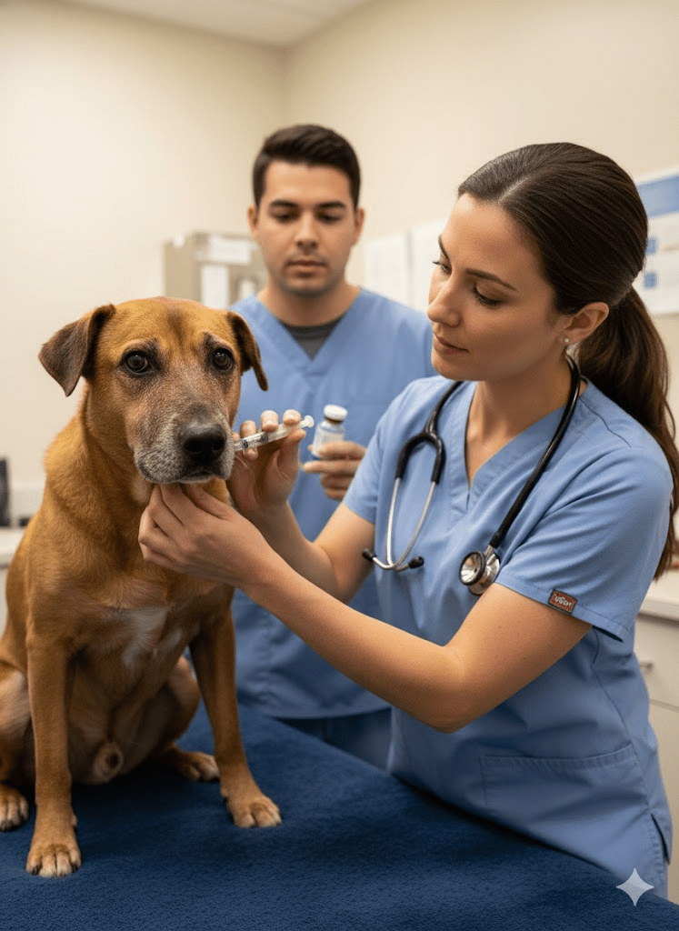 The image before us captures a moment of distress that many pet owners might unfortunately encounter: a dog exhibiting signs of a significant allergic reaction. The swelling around the muzzle and eyes, as seen in the photograph, is a classic indicator of an acute allergic response, often triggered by insect stings or bites, certain foods, medications, or environmental allergens. This particular presentation, characterized by facial edema, can quickly progress and, if severe enough, compromise the animal’s airway, transforming a uncomfortable situation into a life-threatening emergency. Understanding the underlying mechanisms of allergic reactions in canines, recognizing the varied symptoms they can present, and knowing how to respond promptly and effectively are crucial skills for any responsible dog owner. This article aims to demystify canine allergies, provide practical advice on initial assessment and intervention, and emphasize the importance of veterinary consultation to ensure the best possible outcome for our beloved companions. By arming ourselves with knowledge, we can be better prepared to safeguard our dogs’ health and well-being when faced with such unexpected challenges.