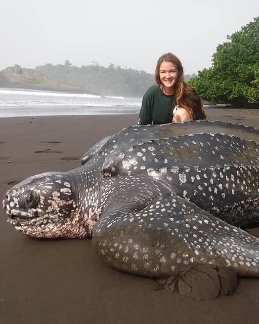 The early morning sun was already blistering, casting long, hot shadows over the quiet beach in Equatorial Guinea. And there, motionless in the sand, was something ancient—something immense. A leatherback sea turtle. Her body stretched nearly six feet, her thick, ridged shell dusted with grit and tangled bits of jungle. But it wasn’t her size that stopped the team in their tracks. It was her stillness.