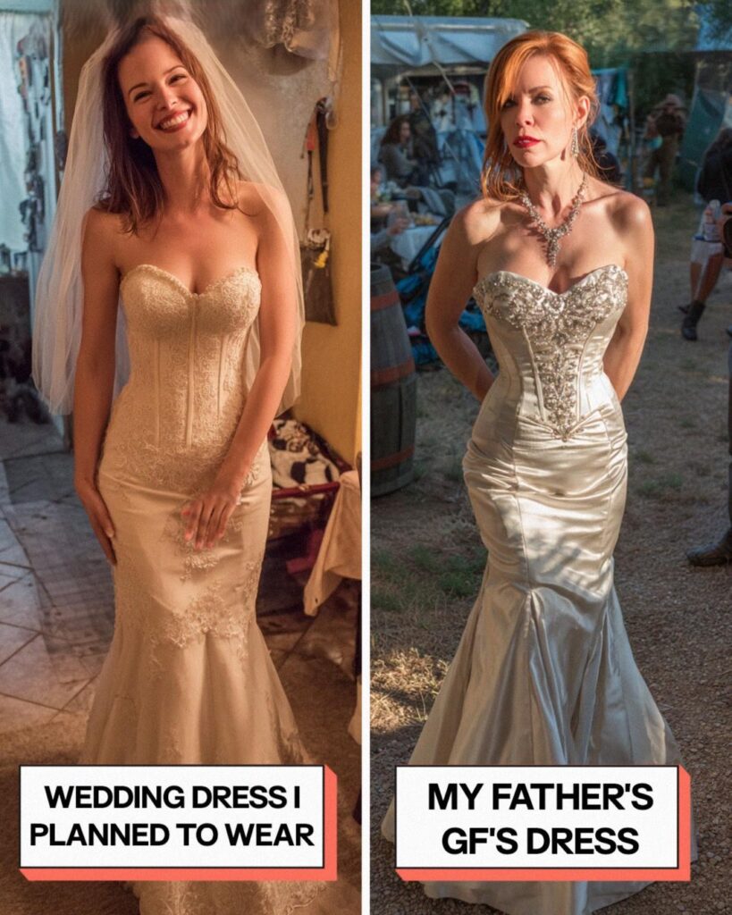 I always imagined our wedding as something soft and honest — vows under trees, good food, and laughter with the people who matter. Evan and I are quiet souls: Sunday coffee, bad car singing, early nights. But peace met its match when Janine — my dad’s girlfriend and self-appointed scene-stealer — decided she’d be the main character. Weeks before the ceremony, she “accidentally” announced our engagement, criticized my dress, and then tried to copy it — white lace, train and all.