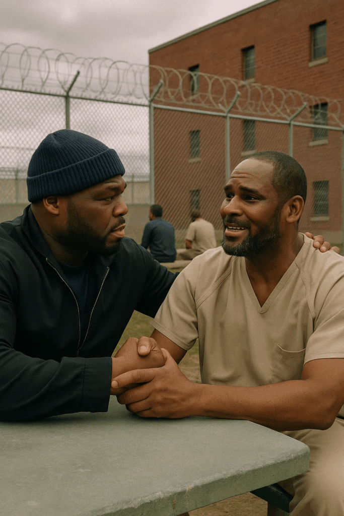 According to witnesses, R. Kelly appeared shocked yet deeply moved when he saw 50 Cent walk into the prison yard. The G-Unit rapper greeted him with a firm handshake and a quiet show of support, reportedly telling him, “I’m here for you, brother. You’ll be out of here soon — just keep your head up.”
