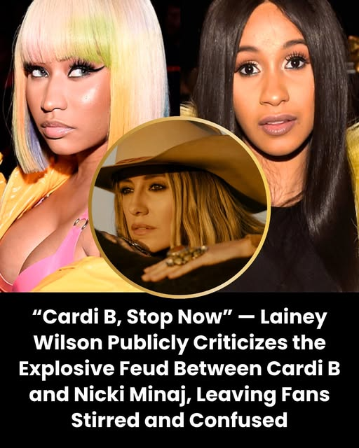 P1.“Cardi B, stop it right now” — Lainey Wilson publicly calls out the explosive feud between Cardi B and Nicki Minaj, leaving fans both thrilled and confused.P1
