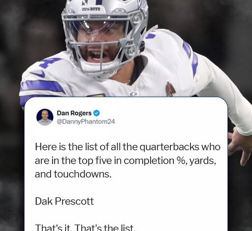 Dan Rogers’s viral tweet may have been short, but it captured something powerful: Dak Prescott isn’t just playing well — he’s redefining consistency at the quarterback position. In a league that celebrates flash and hype, Prescott’s success comes from mastery of fundamentals, accuracy, and leadership.