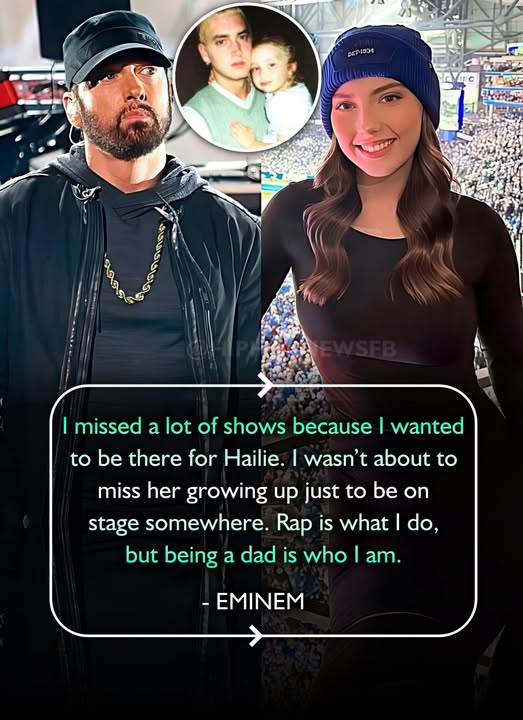 While fans and promoters may not have understood those choices, Eminem’s priorities were simple. If Hailie had a school performance, a sports event, or even just needed him at home, that was where he wanted to be. He didn’t want her to ever feel like her father cared more about fame than about her life. To the world, he was Eminem—the rap icon. But to Hailie, he was just “dad,” and that was the role that mattered most.