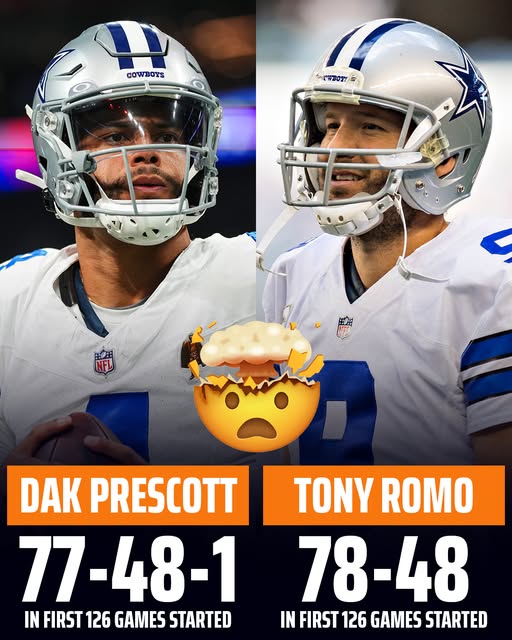When comparing their first 126 career games, the similarities are… chilling: Dak Prescott has thrown just one more touchdown than Tony Romo. One! Over seven years, tens of thousands of yards, hundreds of throws — all for two career paths so parallel that they’re almost identical.