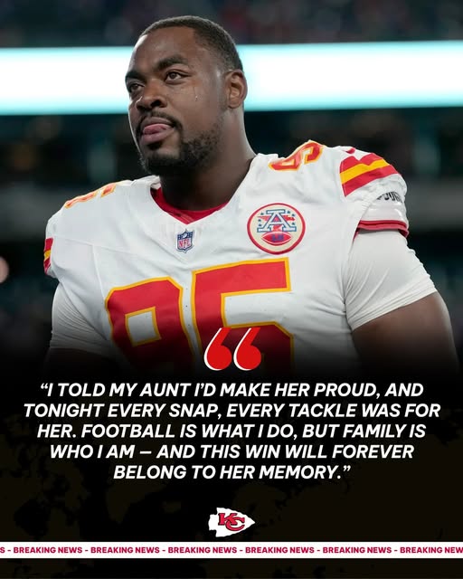 Kansas City, MO — Arrowhead Stadium may have witnessed another Chiefs victory on Sunday night, but for Chris Jones, the game meant something far deeper than football. The star defensive lineman revealed after the 37–20 win over the Baltimore Ravens that he was playing with a heavy heart, driven by a vow he made to his late aunt before she passed away earlier this week.