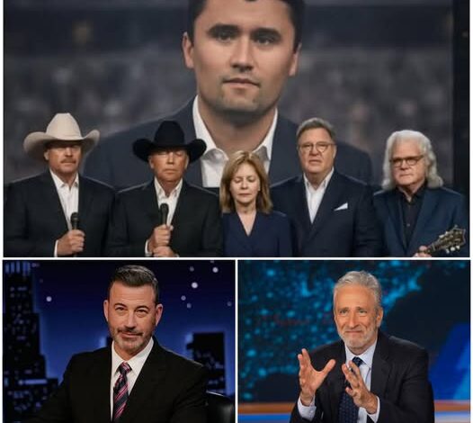 Last night, Stewart didn’t just walk back onto a studio stage — he stormed it. With Jimmy Kimmel flanking him like a battlefield ally and five unannounced country music icons roaring into the spotlight in a jaw-dropping act of secrecy, Stewart rewrote the rules of television in real time.