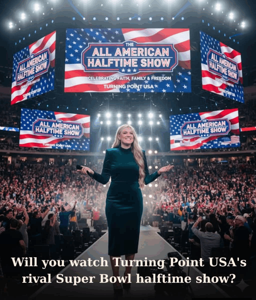 BREAKING ENTERTAINMENT NEWS: Turning Point USA, now led by Erika Kirk, widow of the late Charlie Kirk, has announced an alternative to the Super Bowl 60 Halftime Show — The All American Halftime Show. The event promises to celebrate “Faith, Family, and Freedom” with a powerful lineup of patriotic performances and special guests. Set to air live opposite the NFL show — which halftime will you be watching?