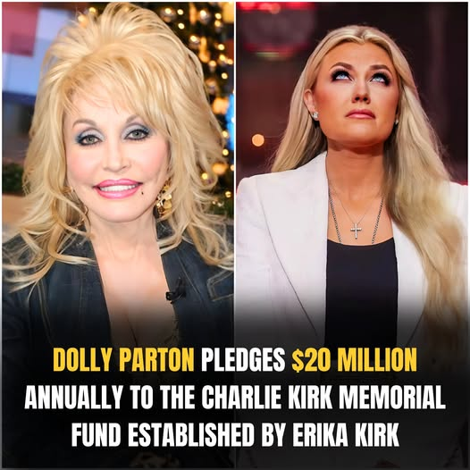 In an announcement that has sent ripples across the nation, country music legend Dolly Parton has pledged $20 million annually to the Charlie Kirk Memorial Fund, an initiative founded by Erika Kirk to honor her late husband’s legacy of faith, patriotism, and leadership.