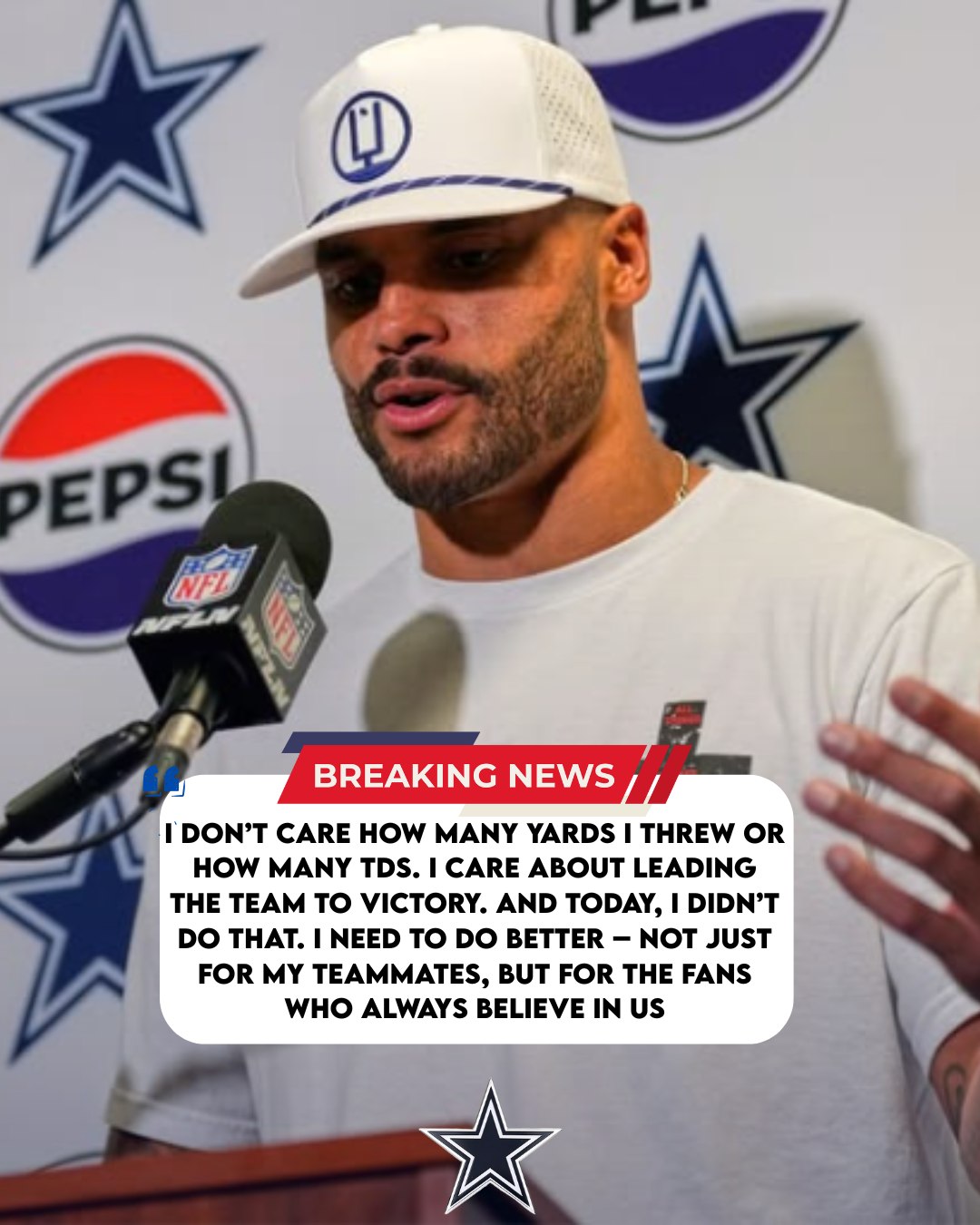 ss After the heartbreaking loss to the Panthers, quarterback Dak Prescott took full responsibility: “If I had performed better, maybe we wouldn’t have lost.”