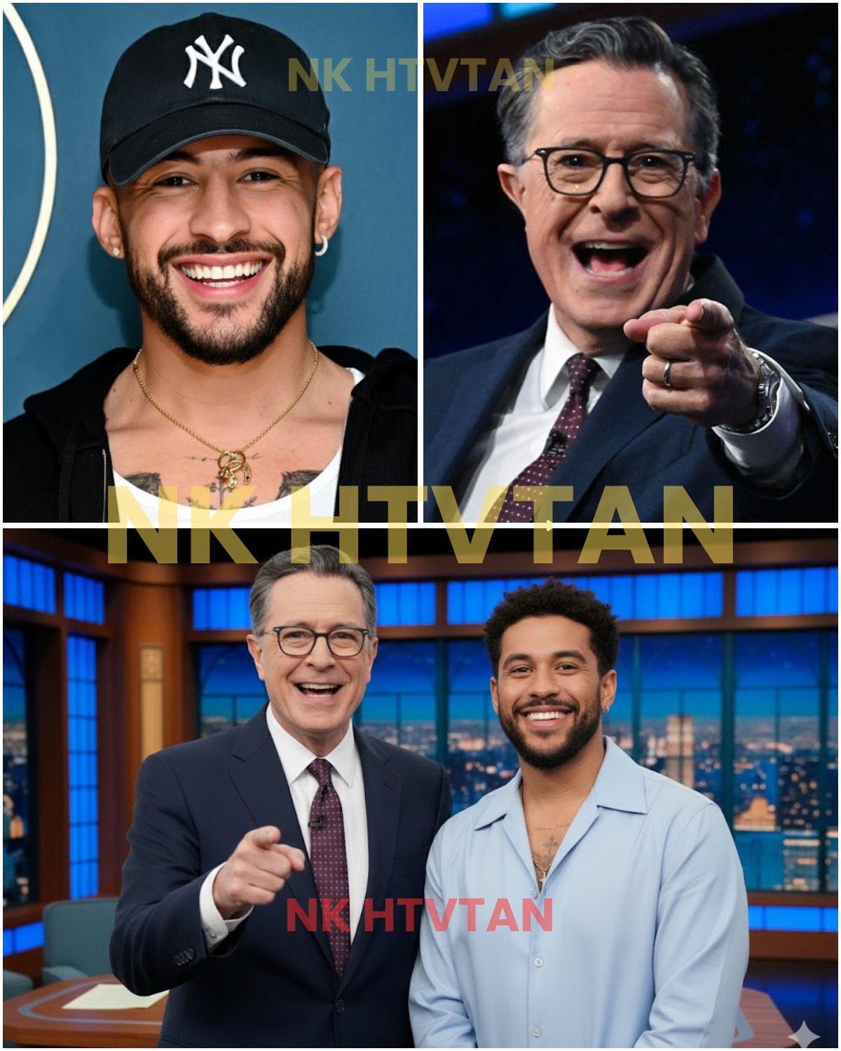 The occasion? The king of late-night satire joining forces with the global prince of reggaeton. Colbert, America’s favorite bespectacled truth-teller, met his match in Bad Bunny, the Puerto Rican megastar who’s spent the past decade turning music, fashion, and identity into performance art. What started as a standard celebrity chat quickly spiraled into one of the most talked-about moments of Colbert’s ten-year run — a fusion of rhythm, humor, and authenticity that left both audiences and execs reeling.