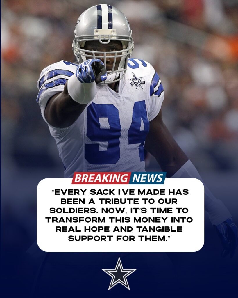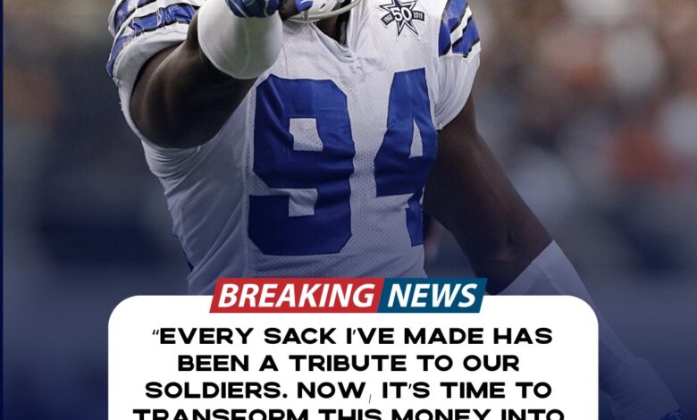 Ware, now 37 and in his 15th season with the Cowboys (including his original tenure from 2005-2013 and a return in 2023), spoke with deep emotion. “Every sack I’ve made has been a tribute to our soldiers,” he said. “Now, it’s time to transform this money into real hope and tangible support for them.”