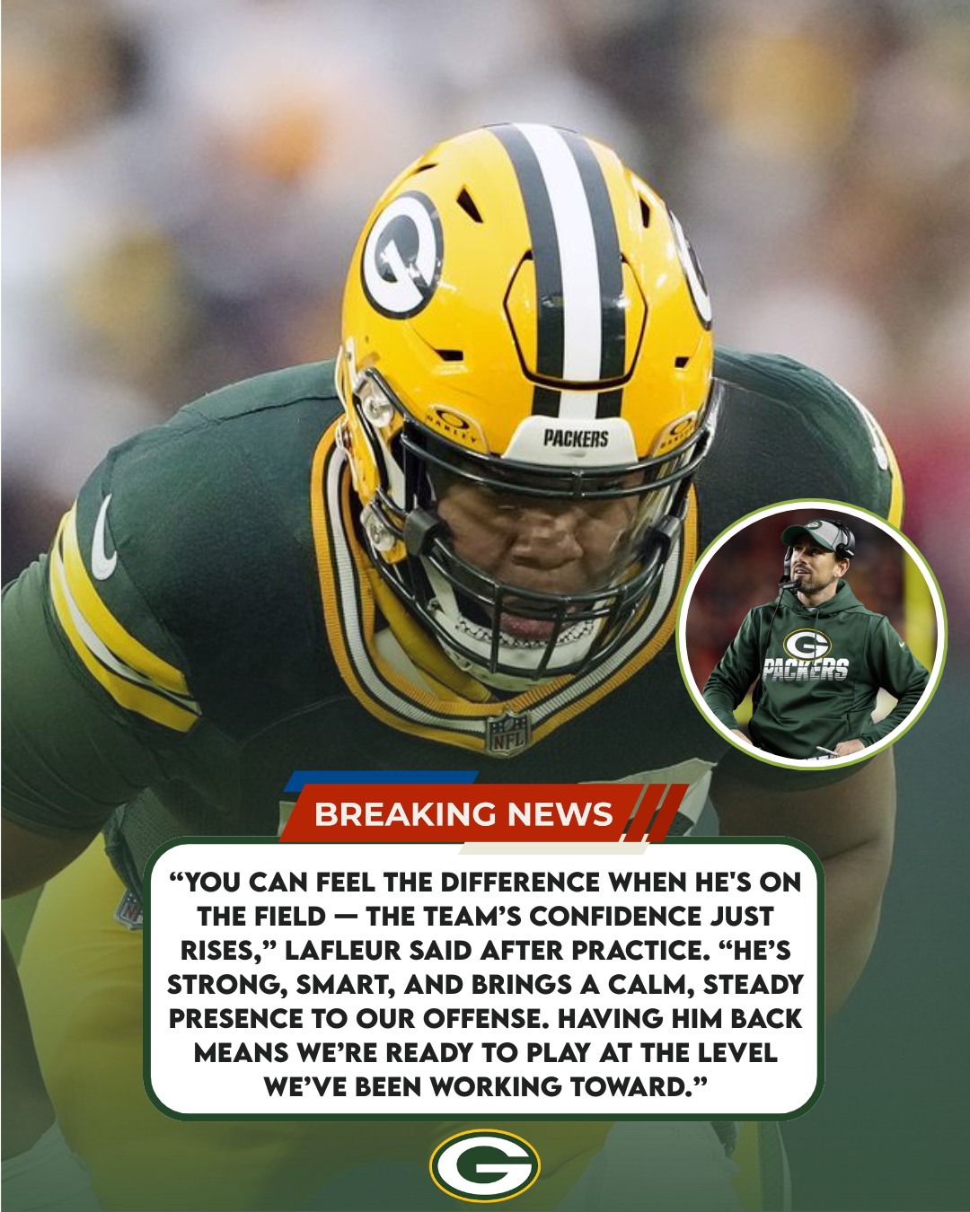 Head Coach Matt LaFleur welcomes back the $120 million young star right tackle – The final piece is complete as the Packers gear up for their next victory.
