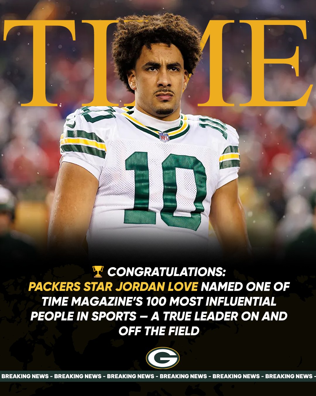 According to TIME, Love embodies “poise, patience, and perseverance” — the very qualities that helped him overcome immense pressure as the successor to Aaron Rodgers and guide a new generation of Packers football.
