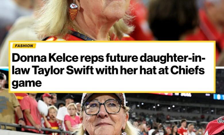 ss Donna Kelce reps future daughter-in-law Taylor Swift with her hat at Chiefs game.