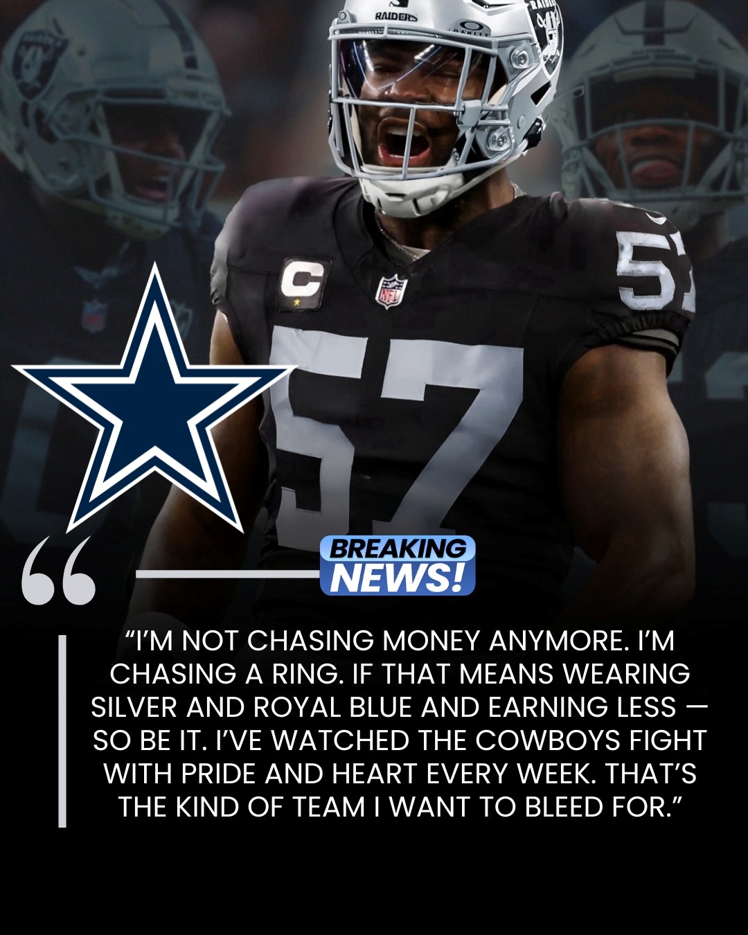 The Dallas Cowboys have moved quickly to strengthen their linebacker corps, reaching an agreement to sign veteran LB Germaine Pratt — just 12 hours after his release from the Las Vegas Raiders