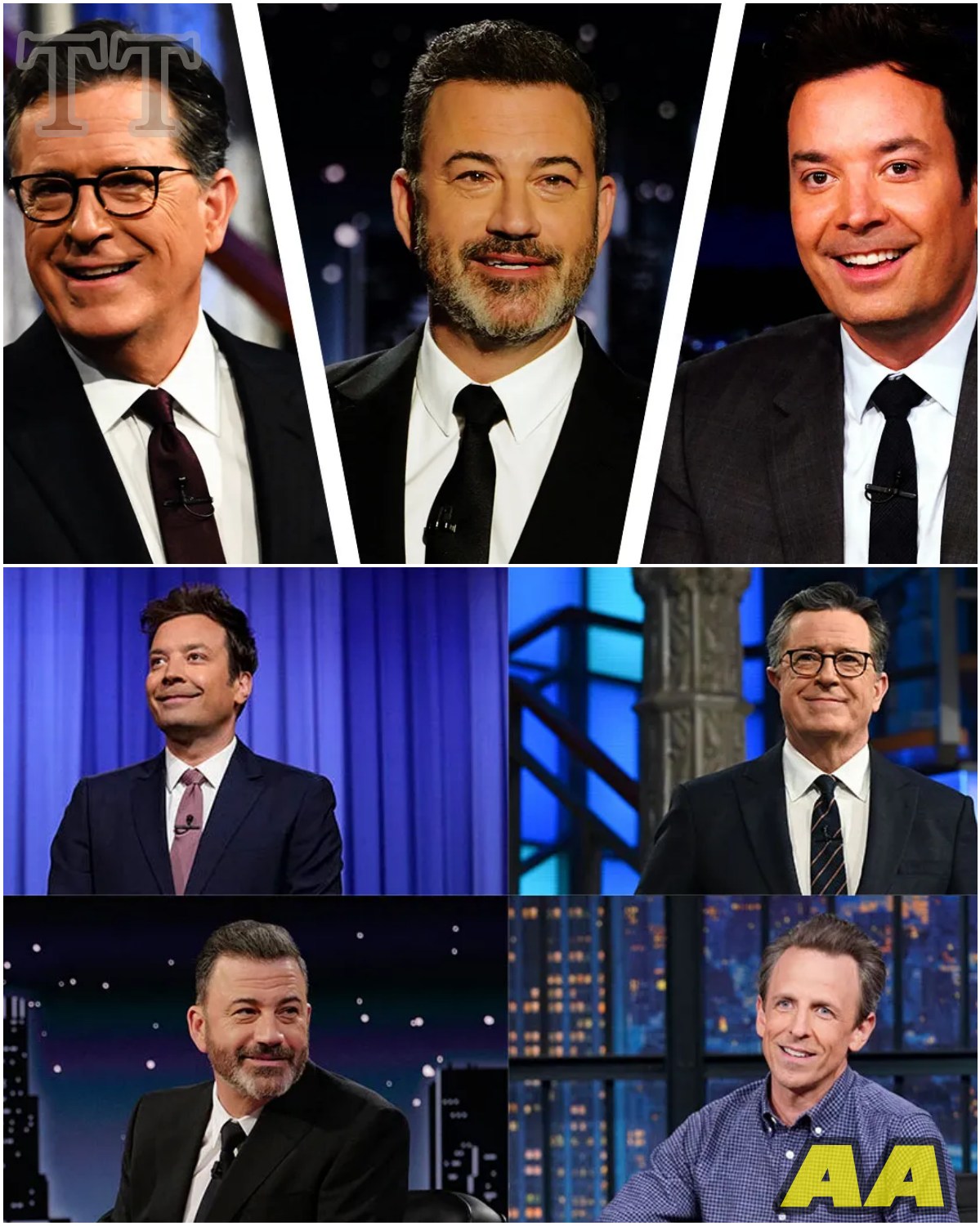 After CBS abruptly canceled The Late Show following Stephen Colbert’s biting monologue mocking a $16 million deal, late-night rivals Jimmy Fallon, Jimmy Kimmel, John Oliver, and Seth Meyers united across networks in a historic act of rebellion — transforming outrage into solidarity and igniting what many now call the biggest protest in television history.