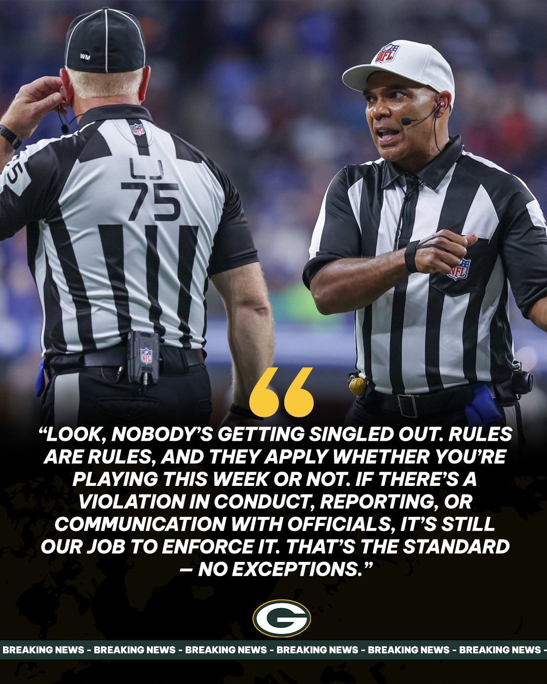 “Look, nobody’s getting singled out. Rules are rules, and they apply whether you’re playing this week or not. If there’s a violation in conduct, reporting, or communication with officials, it’s still our job to enforce it. That’s the standard — no exceptions.”