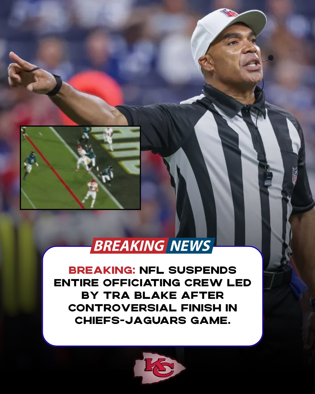 NFL Suspends Entire Officiating Crew Led by Tra Blake After Controversial Finish in Chiefs-Jaguars Game.