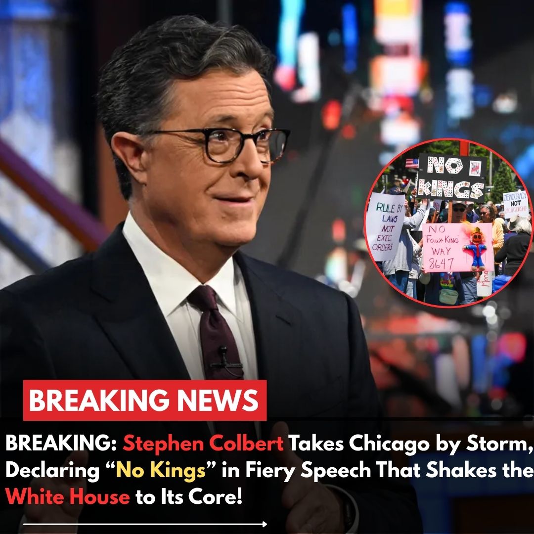 ss “NO KINGS!” — Stephen Colbert’s Fiery Chicago Speech Sends Shockwaves Through Washington: White House Reportedly “Scrambling” After His Explosive Call to Action. What began as a comedy event turned into a political earthquake. With a single defiant phrase, Colbert shattered the late-night status quo and ignited a national debate that no one saw coming. Witnesses say even top aides were caught off guard — and now insiders are calling it “the speech that changed everything.”