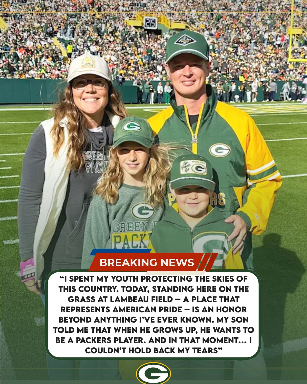 “I spent my youth protecting the skies of this country. Today, standing here on the grass at Lambeau Field – a place that represents American pride – is an honor beyond anything I’ve ever known. My son told me that when he grows up, he wants to be a Packers player. And in that moment… I couldn’t hold back my tears.”