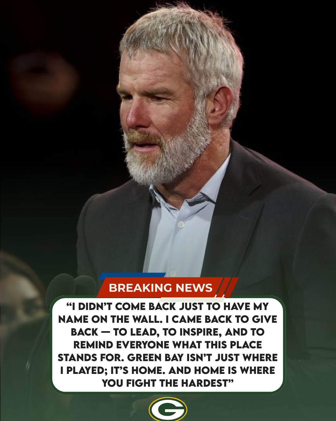 “I didn’t come back just to have my name on the wall. I came back to give back — to lead, to inspire, and to remind everyone what this place stands for. Green Bay isn’t just where I played; it’s home. And home is where you fight the hardest.”