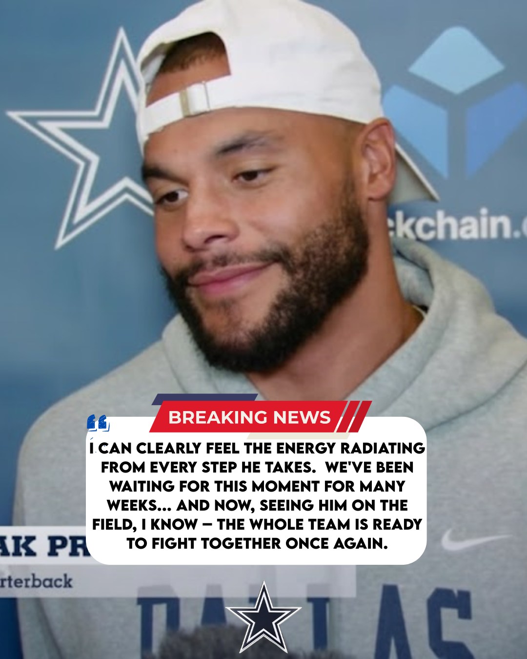 “He looks absolutely great,” Dak said, his voice choked with emotion. “I can clearly feel the energy radiating from every step he takes – that look in his eyes, that smile, everything says ‘I’m back.’ We’ve been waiting for this moment for many weeks… and now, seeing him on the field, I know – the whole team is ready to fight together once again.”