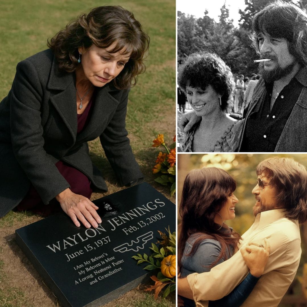 Before her lay the name carved into stone: Waylon Jennings. Simple. Steadfast. Eternal. Yet Jessi knew it wasn’t the marble that truly held him. It was the music. The years they had shared. The ache and the joy woven into every note. She carried no flowers. She had never needed to. Instead, her hands cradled an old transistor radio—battered, familiar, and faithful. The very same radio that once sat on their kitchen counter, filling desert nights with songs, while Waylon played his guitar and Jessi brewed coffee.