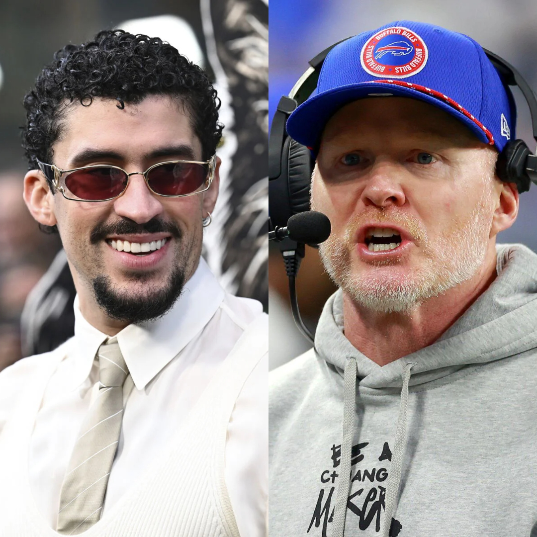The NFL is reeling after Buffalo Bills head coach Sean McDermott delivered a scathing attack on the league’s decision to feature global superstar Bad Bunny as the headliner for the 2026 Super Bowl Halftime Show. In an unprecedented move, McDermott not only mocked the decision but also went so far as to threaten to withdraw the Bills from the championship game if the performance goes ahead.